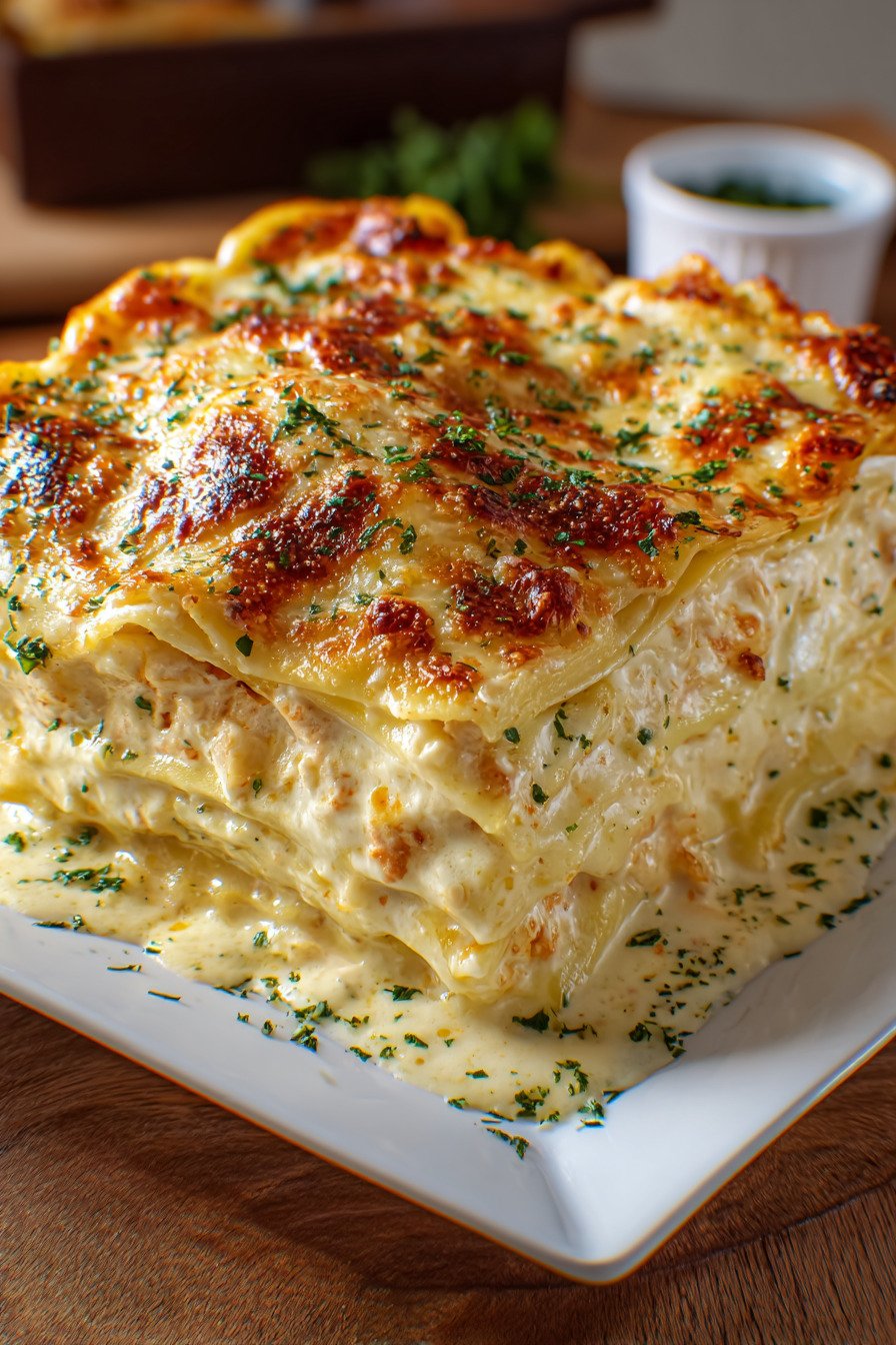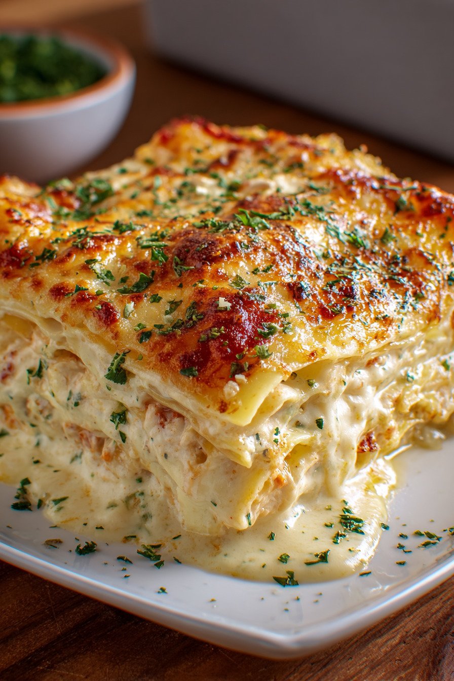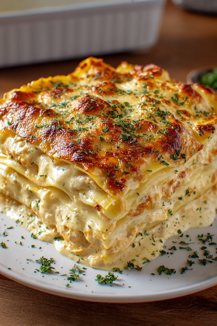If you are looking for a cozy, crowd-pleasing chicken lasagna recipe, this creamy baked pasta is the kind of dinner that feels special enough for guests but easy enough for a family meal. This chicken lasagna recipe easy version combines tender shredded chicken, rich cheese, soft lasagna noodles, and a velvety sauce for a dish that bakes up golden, bubbling, and completely irresistible. What makes this recipe extra appealing is how it blends the comfort of a white chicken lasagna recipe with the creamy, satisfying layers people love in any classic lasagna recipe. It has the same hearty appeal you expect from a lasagna recipe easy enough for weeknights, while still delivering the flavor and presentation of an easy lasagna recipe you would proudly serve for Sunday dinner or a special occasion. Even if you usually make a buffalo chicken lasagna recipe or stick to a more traditional lasagna recipe, this version is worth adding to your meal plan. The balance of juicy chicken, creamy sauce, herbs, and melted cheese creates a chicken lasagna recipe that feels both familiar and fresh, making it one of those dinners everyone asks for again.