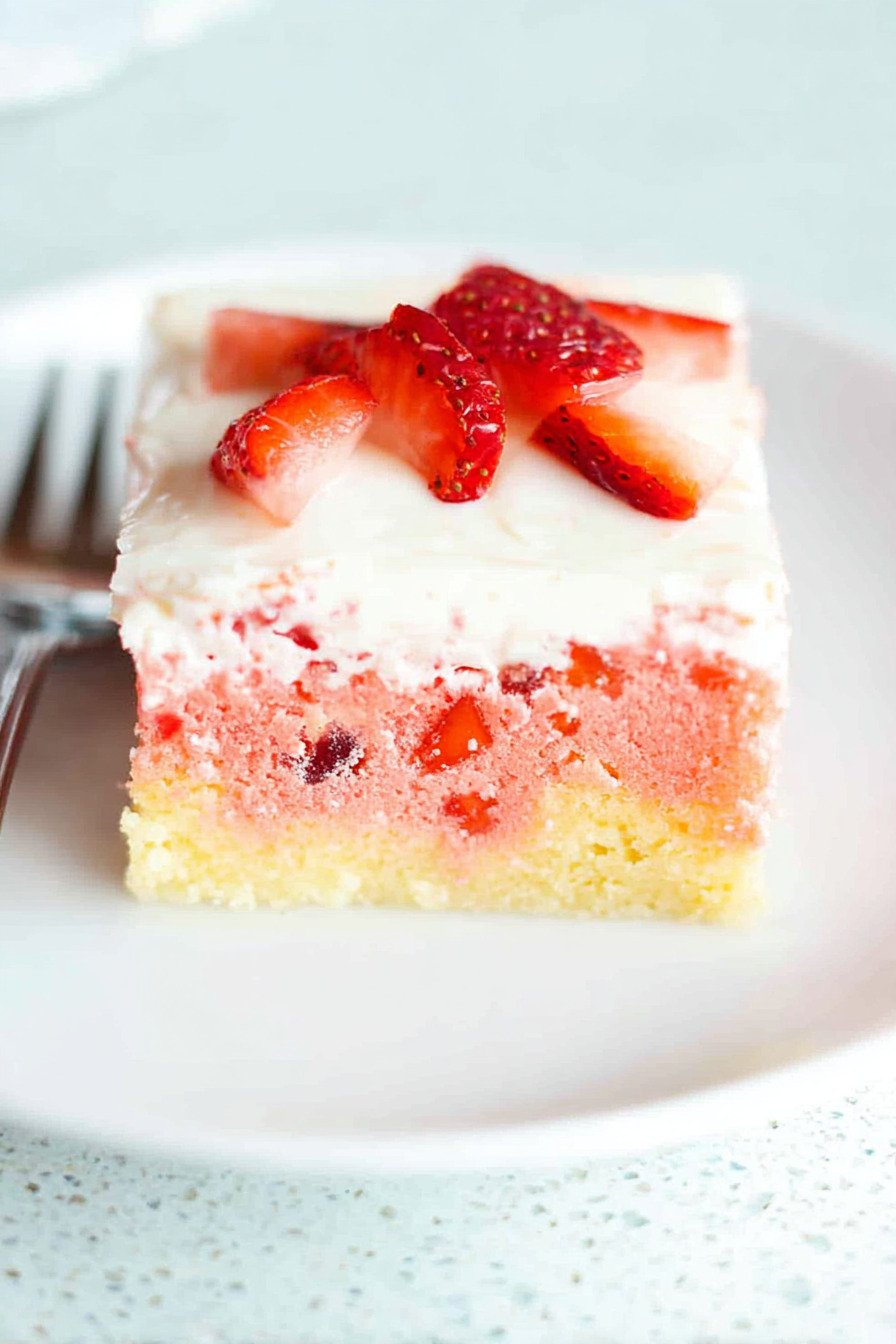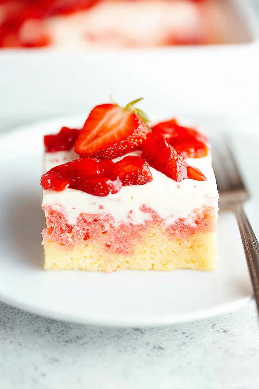 If you’ve ever tried a red velvet poke cake recipe or experimented with a lemon poke cake recipe jello twist, you’ll appreciate how easy and fun this strawberry cake recipe is to make. It’s the perfect dessert for parties, holidays, or simply treating yourself to something sweet and refreshing.