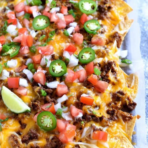 Use thick, sturdy tortilla chips whenever possible. Thin chips can break under the weight of the toppings, especially in a loaded nachos recipe like this one. Layering the chips and toppings in two rounds also helps ensure every serving gets a good balance of meat, cheese, and toppings.