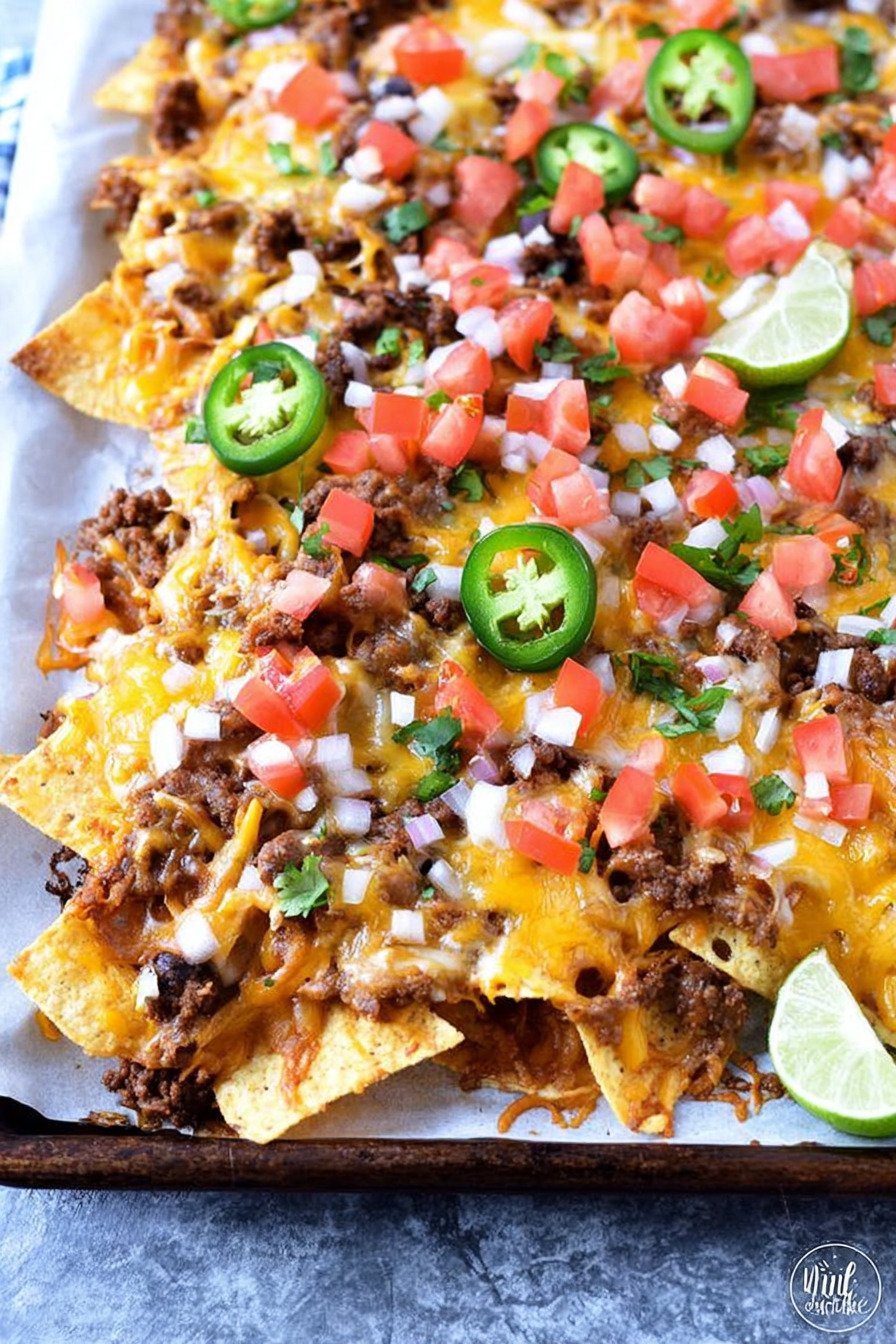 When you need a crowd-pleasing nachos recipe that feels fun, filling, and loaded with flavor, this Epic Beef Nachos Supreme is the one to make. It layers crispy tortilla chips with seasoned beef, melty cheese, beans, and fresh toppings for a dish that tastes like your favorite takeout, only fresher and more satisfying. If you have been looking for a beef nachos recipe or a nachos recipe beef version that is hearty enough for dinner, this one checks every box. One of the best parts about this nachos recipe easy idea is how quickly it comes together on a busy night. The savory beef mixture turns it into a reliable ground beef nachos recipe, while the simple layering method keeps everything beginner-friendly. It is the kind of easy meal that can also inspire variations, whether you usually make a chicken nachos recipe for game day or want to switch proteins depending on what you have in the fridge. This truly earns its place as a best nachos recipe because every bite is packed with crunch, gooey cheese, bold seasoning, and cool fresh toppings. Serve it for parties, family movie night, casual gatherings, or even as a shareable weekend dinner. Once you try this homemade version, you will keep this nachos recipe on repeat whenever you want something comforting, fun, and seriously delicious.